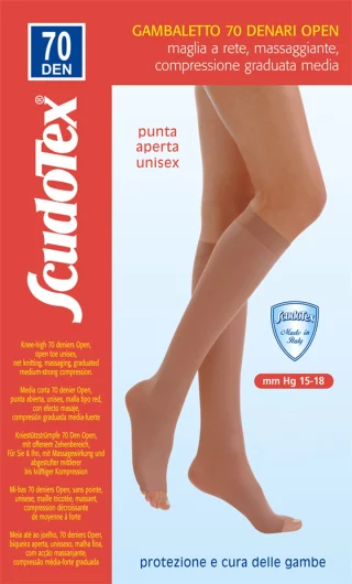 Scudotex 824 preventivne dokoljenke za vene s otvorenim prstima 70DEN pogodne su za slučajeve gdje su zamjetni znakovi blažeg venskog zastoja.
