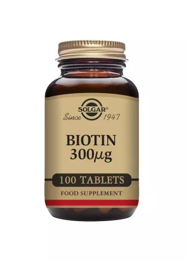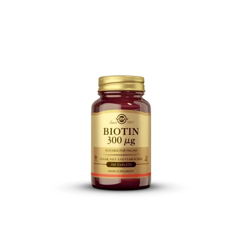 Solgar Biotin 300 μg pridonosi normalnom održavanju kose, kože i sluznica, normalnom funkcioniranju živčanog sustava i normalnoj psihološkoj funkciji.