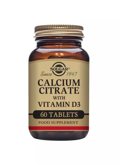 Solgar Kalcij Citrat + vitamin D3 tablete dodatak su prehrani koji sadrži kalcij u obliku citrata kojeg odlikuje vrlo brzo otapanje i iskorištavanje u organizmu. Kombinacija kalcija i vitamina D pomaže usmjeriti ugradnju kalcija u kosti te sprječava njegovo slučajno odlaganje na stijenke krvnih žila.