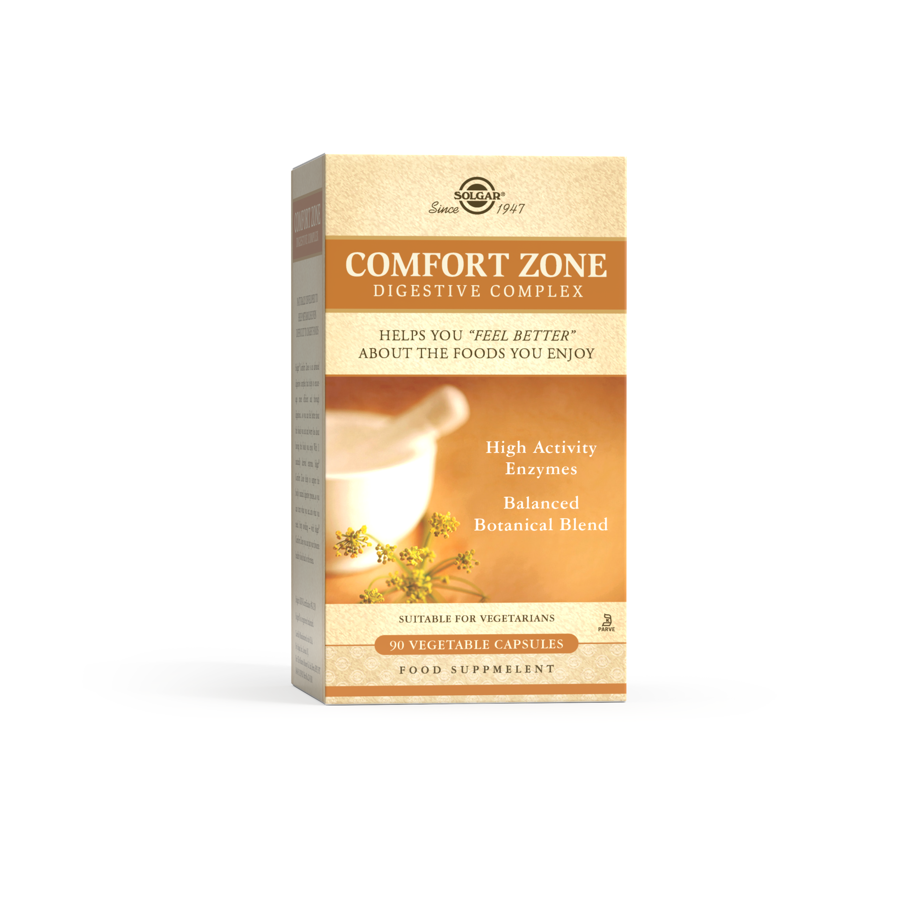 Solgar Comfort zone Digestive complex kapsule su dodatak prehrani za smanjenje probavnih tegoba loše probave i nadutosti te doprinosi normalnoj funkciji probavnog sustava. Moćna kombinacija biljaka i probavnih enzima olakšat će probavljanje hrane, smanjiti osjećaj težine u želucu te potaknuti i gušteraču na lučenje njenih probavnih sokova.