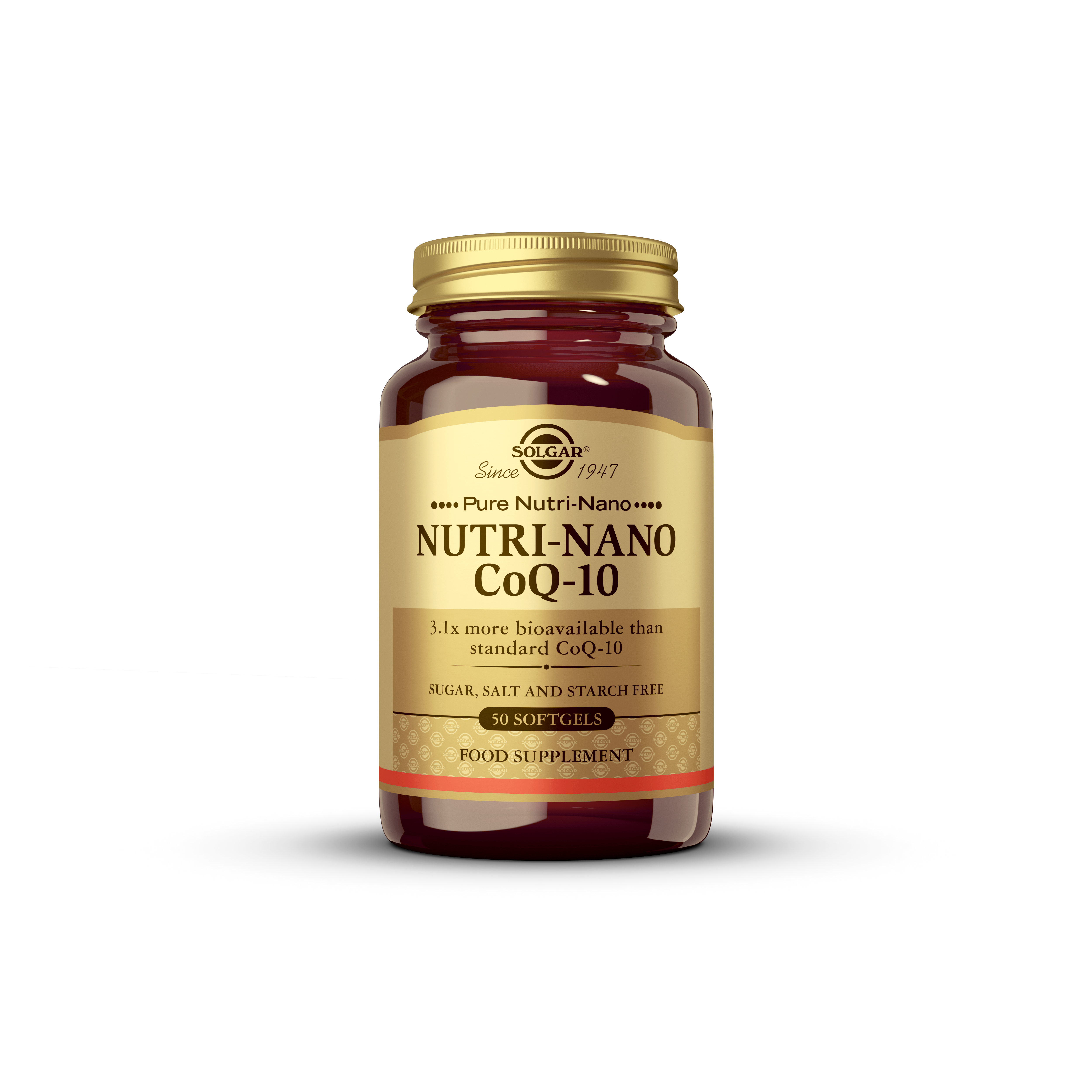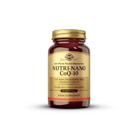 Solgar Nutri-Nano™Co-Q10 meke želatinske kapsule, sadrže koenzim Q10 (30 mg) proizveden najsuvremenijom nano-tehnologijom koja omogućuje triput veću apsorpciju i bioraspoloživost.
