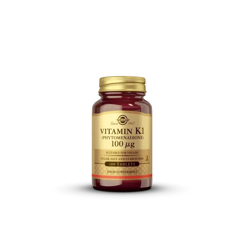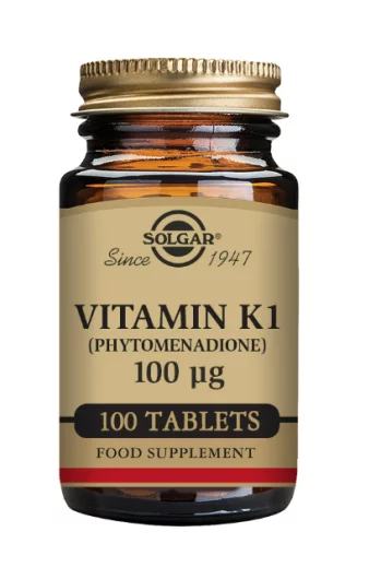 Solgar Vitamin K1 tablete sadrže 100 μg vitamina K, vitamina topivog u mastima koji doprinosi normalnom zgrušavanju krvi.