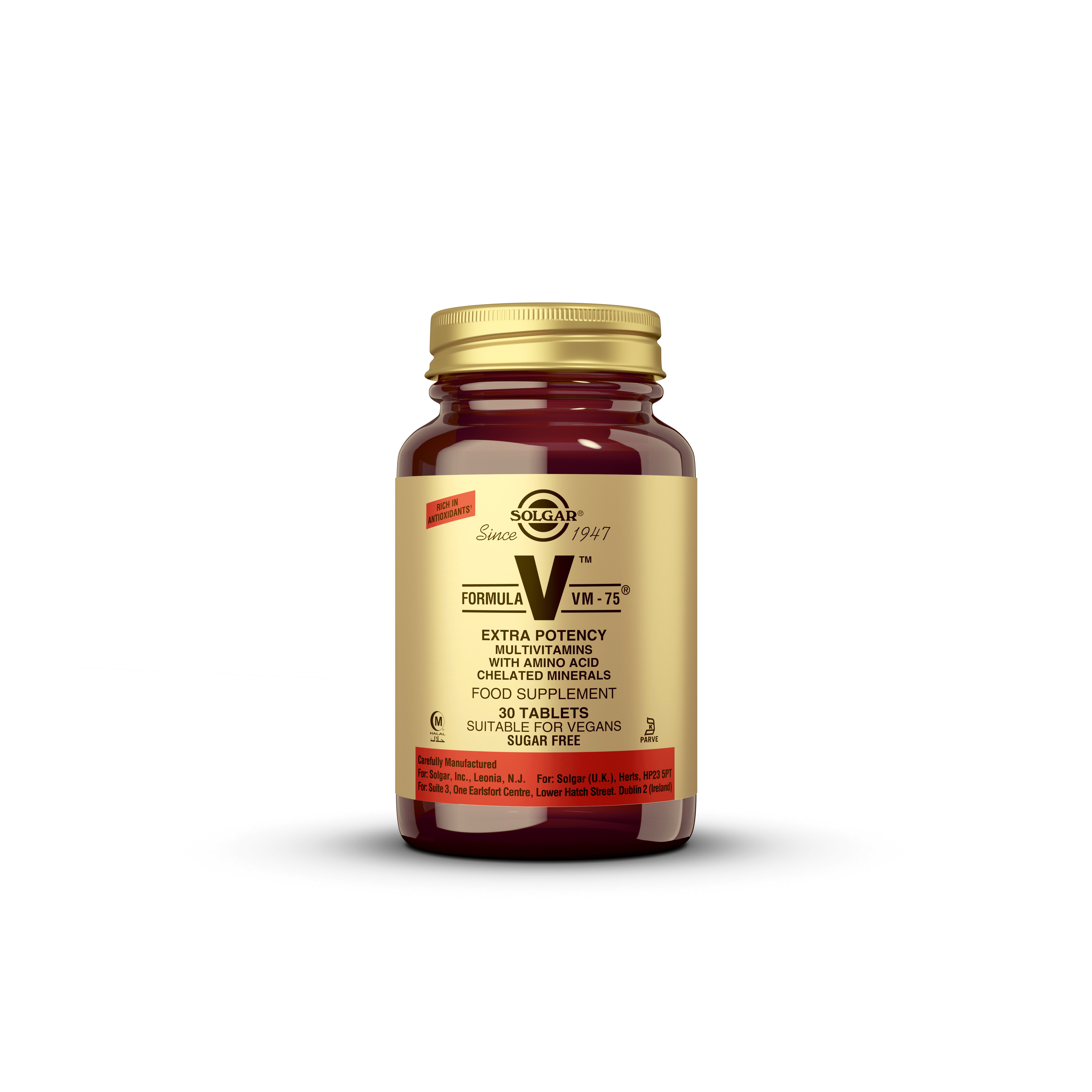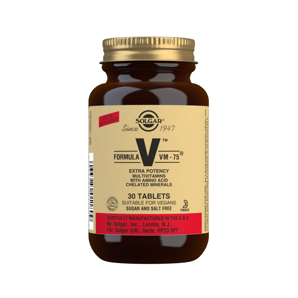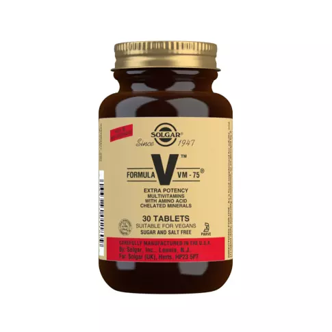 Solgar VM-75 tablete dodatak su prehrani koji sadrži kompleksnu formulu vitamina, minerala, antioksidansa, biljnih osnova u prahu (alfa-alfa, acerola, peršin, šipak, potočarka i kelp) i bioflavonoida u samo jednoj tableti dnevno.