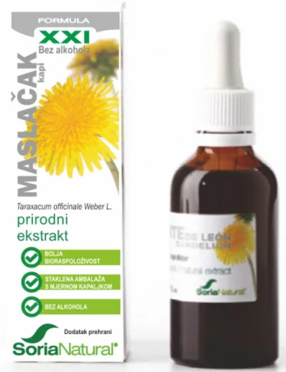 Soria Natural maslačak je prirodni ekstrakt od korijenja biološki proizvedene biljke maslačak (Taraxacum gr. officinale Weber) u bezalkoholnoj otopini – mješavini biljnoga glicerina i pročišćene vode.
