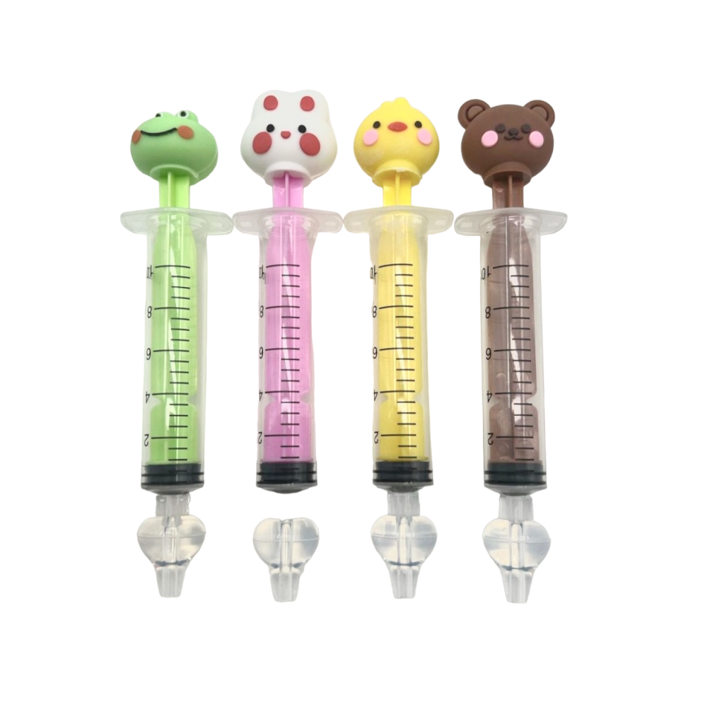 Set se sastoji od dvije medicinske šprice od 10ml i dva mekana nastavka koji su odvojivi kako bi se šprica mogla očistiti, a čisti se tako da se stavi u posudicu s vrućom vodom uz malo blagog šampona (37-40 stupnjeva 2 minute).