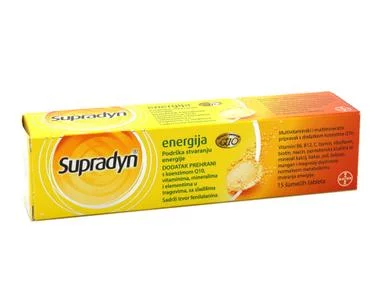 Supradyn Energija Q10 pozitivno djeluje na organizam i potiče prirodnu unutarnju energiju. Uz osjećaj budnosti, pruža snažan osjećaj energije. Supradyn sadrži odličnu kombinaciju vitamina i minerala. Jedinstvenom formulacijom multivitamina i multiminerala djeluje unutar stanica i potiče njihovu prirodnu energiju. Supradyn pomaže maksimalno iskoristiti Vaše energetske rezerve.