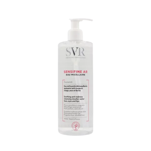 SVR SENSIFINE AR micelarna voda čisti, uklanja make-up i umiruje osjetljivu kožu sklonu crvenilu. Odmah po nanošenju zbog osjećaja hlađenja umiruje osjet vrućine na koži, žarenje i crvenilo. Bez mirisa, parabena, alkohola.
