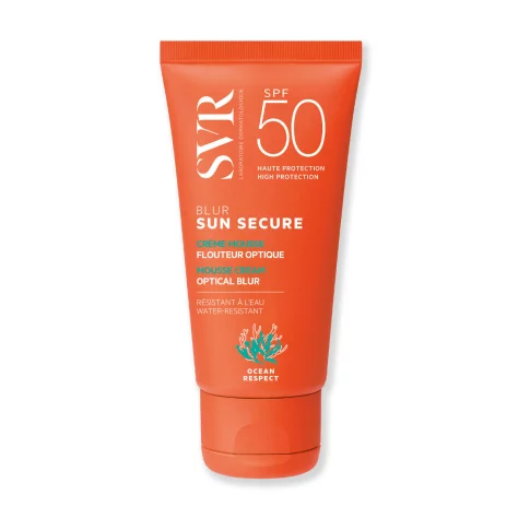 SVR Sun Secure Blur SPF50 kremasti je "mousse" za ujednačavanje boje tena s difuznim optičkim efektom namijenjen zaštiti od sunca. Pogodan za zaštitu i njegu osjetljive kože lica.