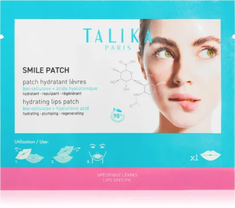 Talika Smile Patch maska za punoću i hidrataciju usana iznimno je hidratacijska biocelulozna maska za usne s hijaluronskom kiselinom koja usnama daje punoću, hrani i obnavlja suhe usne.