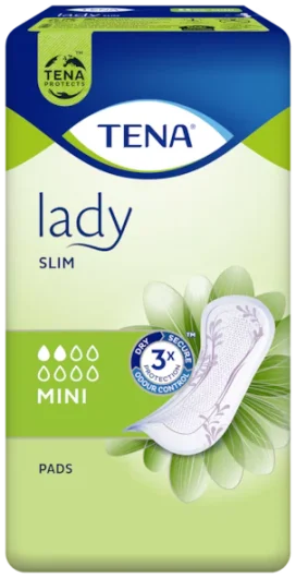 Tena Lady Slim Mini uložak nudi diskretnu i sigurnu zaštitu pri lagano oslabjelom mjehuru. Mekan uložak oblikovan je za žene s osjetljivim mokraćnim mjehurom te pruža diskretnu zaštitu za svakodnevnu upotrebu.