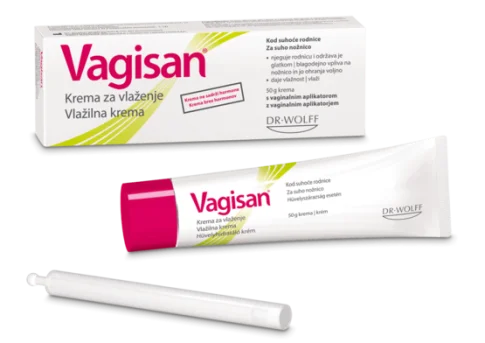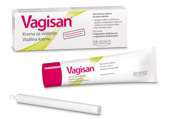 Vagisan krema za vlaženje osjetljivu kožu u području rodnice čini ugodno podatnom smanjujući neugodan osjećaj suhoće.