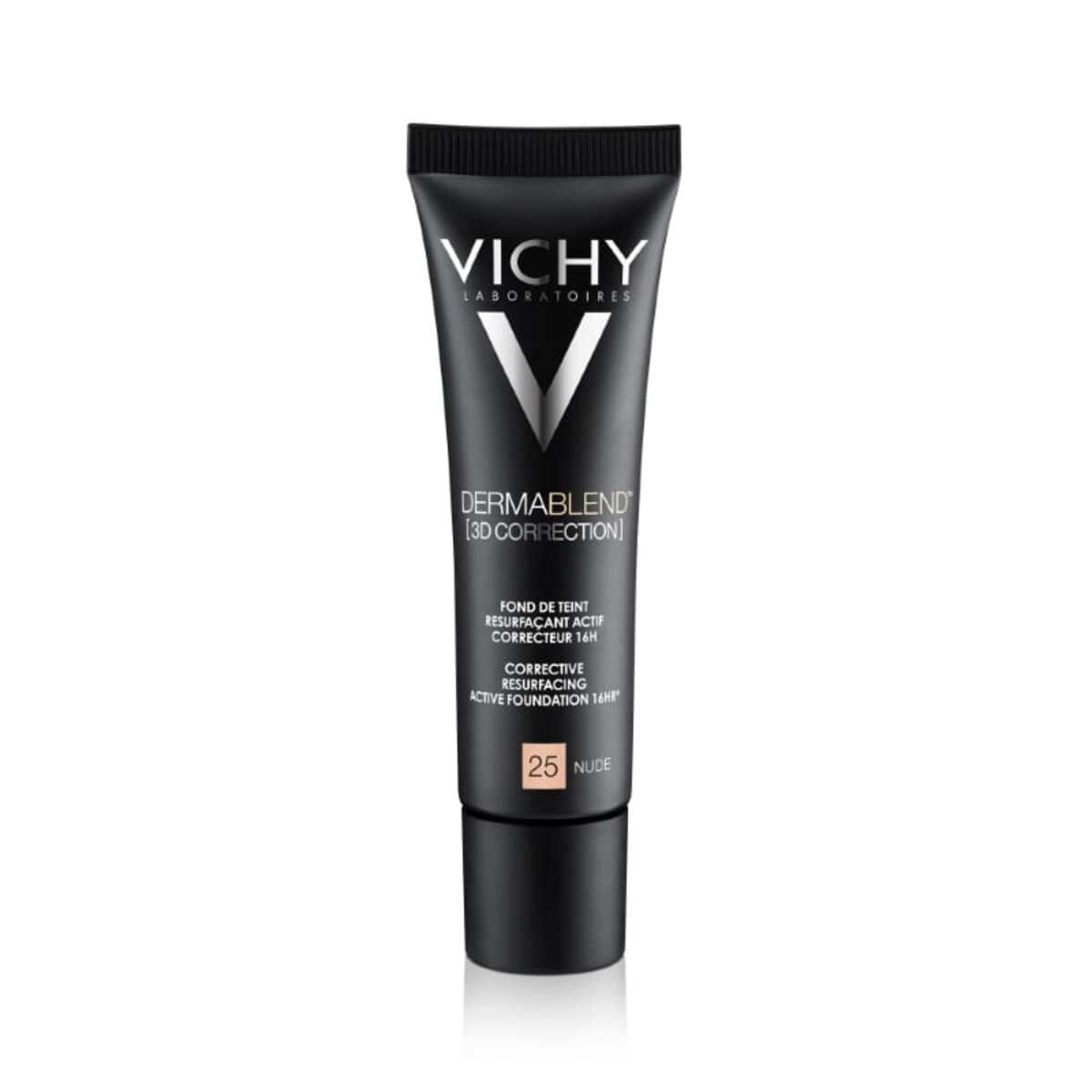 Vichy Dermablend [3D CORRECTION] tekući puder je korektivni puder visokog stupnja prekrivanja koji na masnoj koži ostaje postojan do 16 sati. Savršeno ujednačava ten i prekriva nesavršenosti. Preporučuje se za masnu kožu sklonu aknama i nepravilnostima. Ugodne je teksture, bez efekta maske.