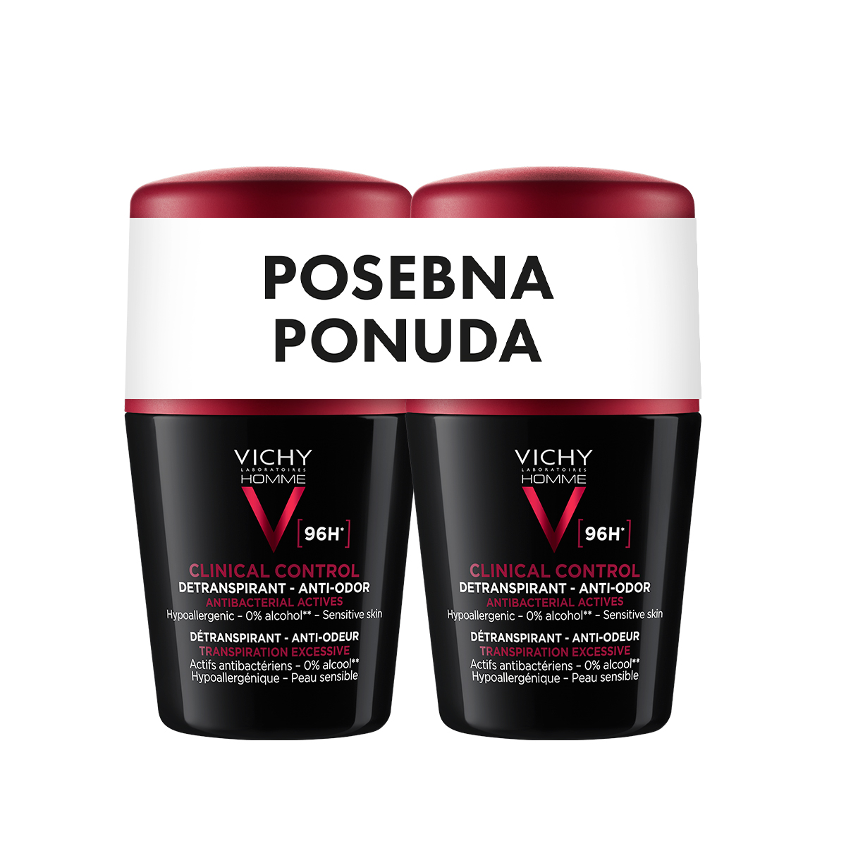Vichy Homme Clinical 96h Control Roll-on dezodorans protiv neugodnih mirisa intenzivna je zaštita od znojenja za muškarce.