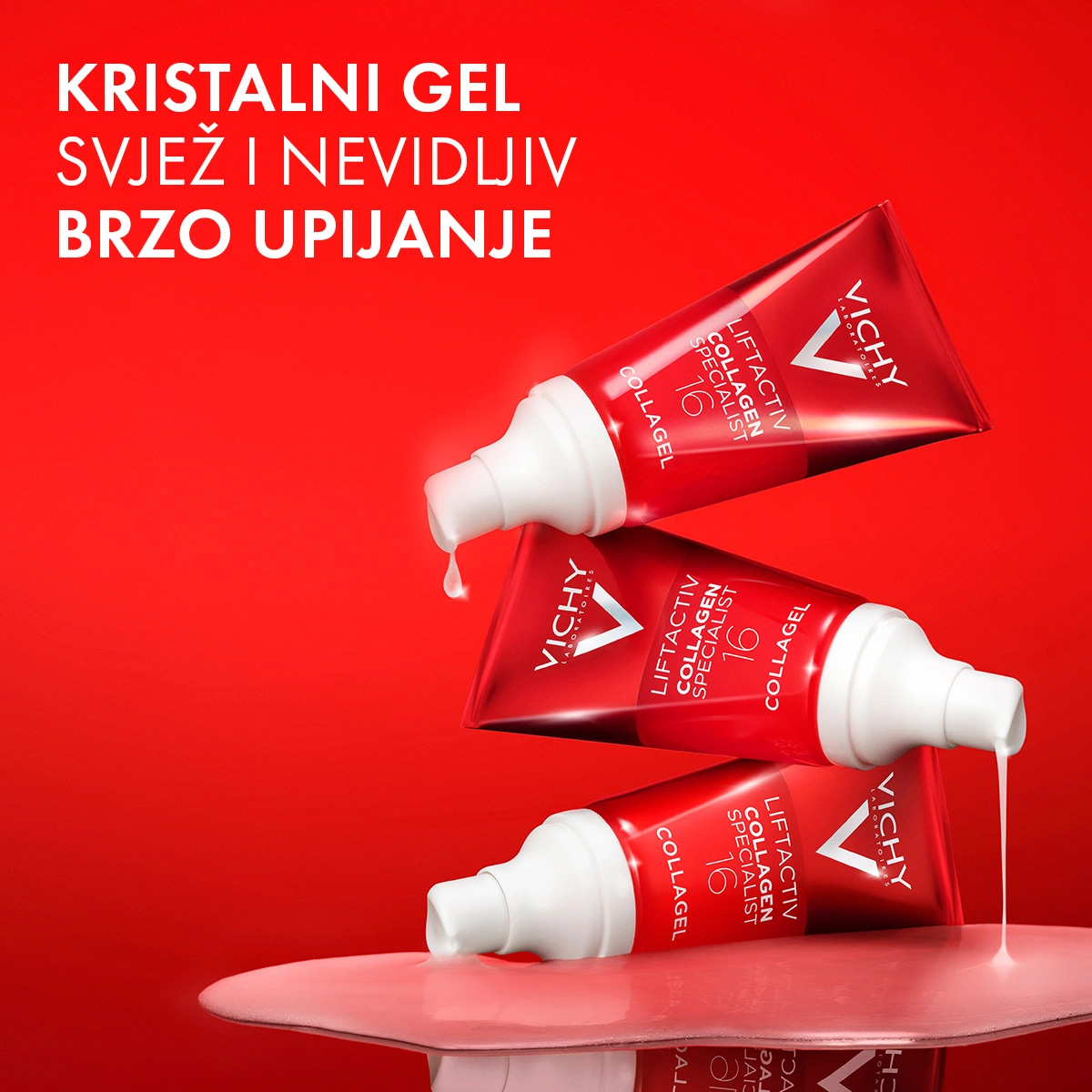 LIFTACTIV COLLAGEN SPECIALIST 16 COLLAGEL je prvi Vichyjev nevidljivi kristalni gel obogaćen tehnologijom povezivanja koja potiče i veže sve skupine kolagena*. Poboljšava 16 znakova mladosti** i trenutni efekt staklenog sjaja.