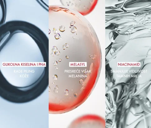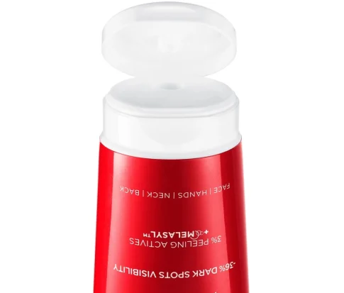 Piling gel za čišćenje Vichy Liftactiv Pigment Specialist B3 protiv tamnih mrlja nježno čisti kožu i uklanja nečistoće (prljavštinu, prašinu i onečišćenja) dok se istodobno bori protiv tamnih mrlja. Formulirano s 3 % aktivnih sastojaka za piling (glikolna kiselina i PHA) i Melasylom. Aktivni sastojci za piling nježno uklanjaju mrtve stanice i zaglađuju površinu kože. Melasyl, aktivni sastojak osmišljen nakon 18 godina istraživanja, presreće višak melanina prije nego što ostavi tragove na koži.