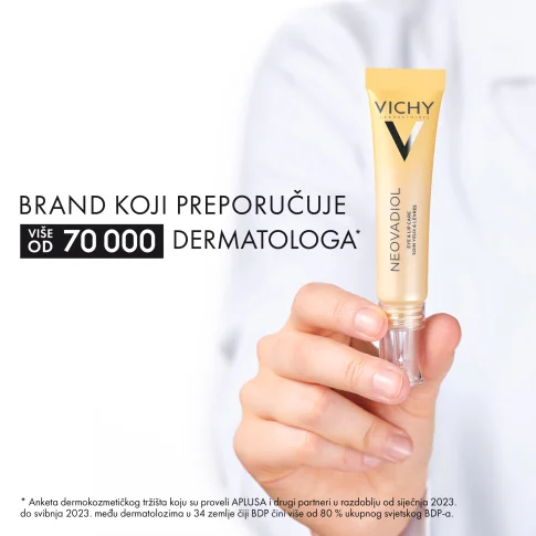 Vichy Neovadiol multikorektivna krema za područje oko očiju i usana koja učvršćuje kožu i smanjuje ovješenost kože kod žena u menopauzi.