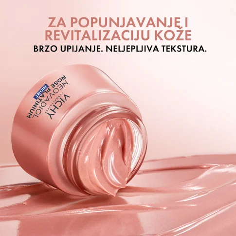 Vichy Neovadiol Rose Platinum ružičasta noćna krema namijenjena je zreloj koži bez sjaja. Ten izgleda sjajnije, a koža osvježenije i čvršće već nakon jedne upotrebe. Koža izgleda jače, sa zdravijim mladenačkim ružičastim sjajem.