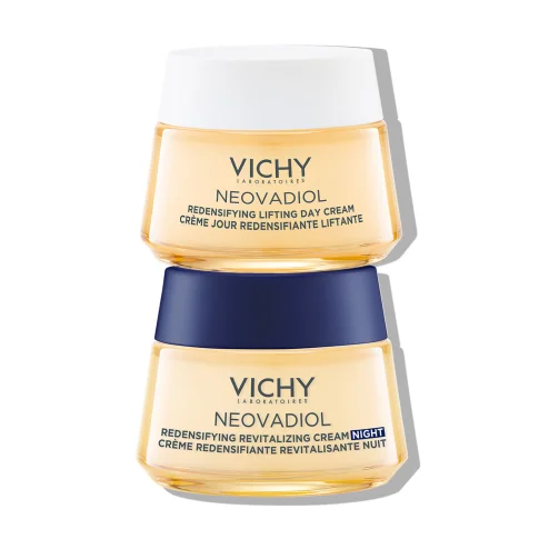 Vichy Neovadiol obnavljajuća dnevna krema za kožu u menopauzi reaktivira mladenačke mehanizme kože te vraća čvrstoću, gustoću i smanjuje dubinu i vidljivost bora. Za normalnu do mješovitu kožu. Tijekom razdoblja menopauze hormonalne promjene ubrzavaju pojavu znakova starenja kože, što doprinosi gubitku elastičnosti i gustoće kože te smanjenoj naglašenosti kontura lica.