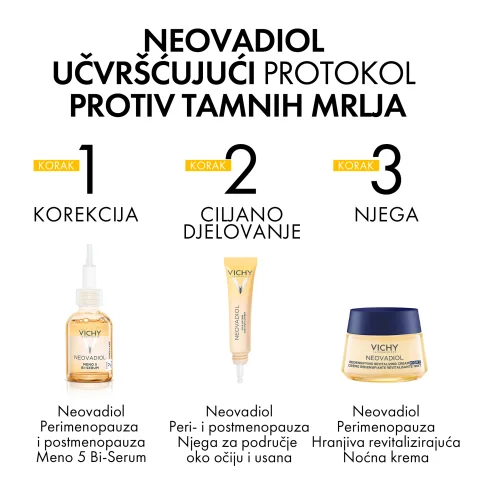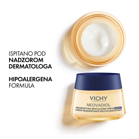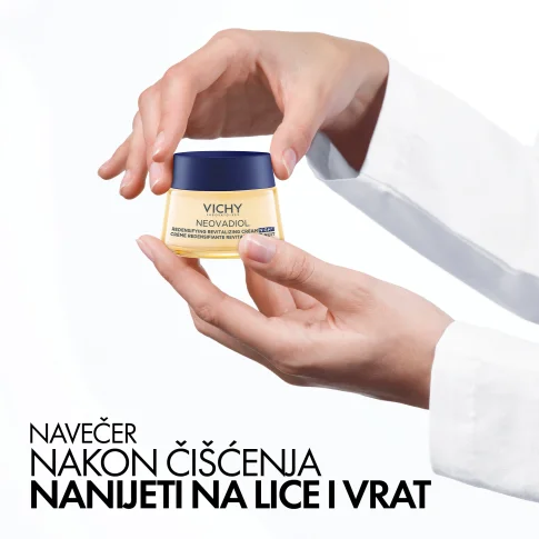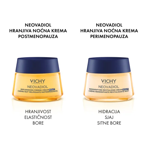 Vichy Neovadiol noćna njega za kožu u menopauzi reaktivira mladenačke mehanizme kože te vraća čvrstoću, gustoću i smanjuje dubinu i vidljivost bora. Svježa i lagana gel-krema s trenutnim učinkom hlađenja.