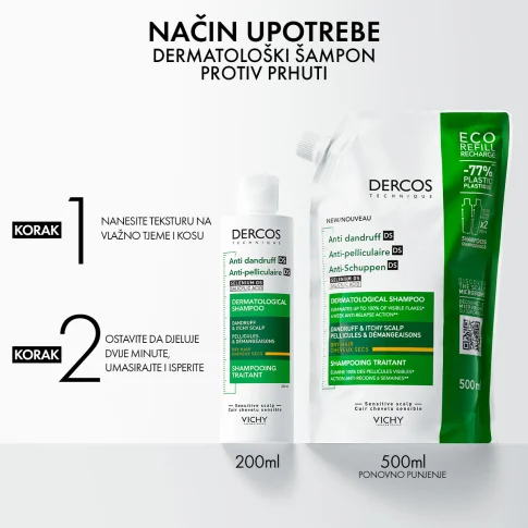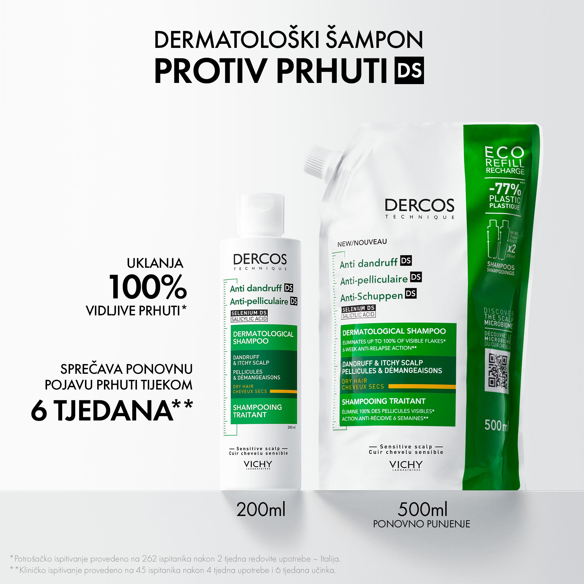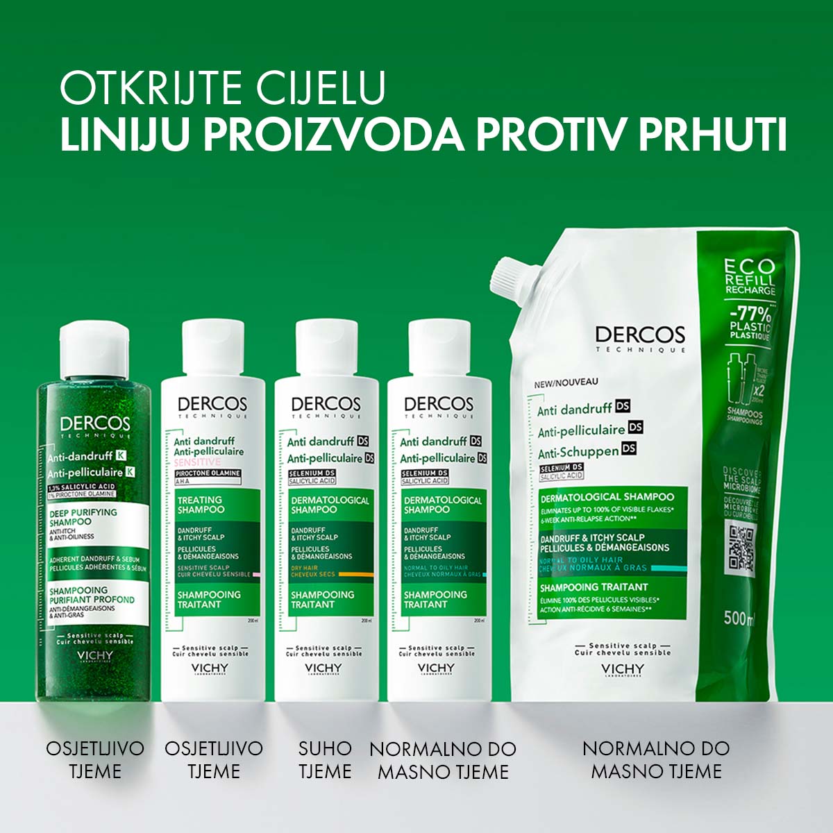 Vichy Dercos šampon za suhu kosu sadrži selen, snažni prirodni aktivni sastojak koji se hvata za prhut i uklanja čak i onu najuporniju.