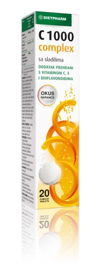 Dietpharm C 1000 mg šumeće tablete su dodatak prehrani koji sadrži 1000 mg askorbinske kiseline (vitamina C). Doprinose jačanju imunološkog sustava. Preporučuje se u stanjima povećane potrebe za vitaminom C, čestih virusnih infekcija (herpesa, gripe) i za zdravlje zglobova i ljepotu kože.