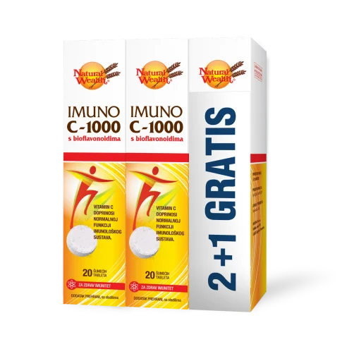 Natural Wealth Imuno C-1000 mg je dodatak prehrani s vitaminom C (1000 mg) i citrusnim bioflavonoidima (10 mg).