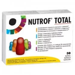 Nutrof kapsule su dodatak prehrani s vitaminima, mineralima, antioksidantima luteinom, zeaksantinom, omega 3 masnim kiselinama i reservatrolom za zdravlje očiju i poboljšanje vida. Nutrof sadrži vitamin C 60 mg, vitamin E 10 mg, cink 10 mg, selen 25 µg , bakar 0,5 mg , lutein 10 mg, zeaksantin 2 mg, omega -3 masne kiseline 330 mg: EPA 40%, DHA 20%, ekstrakt Vitis Vinifera: resveratrol 5% 1 mg. Preporučuju se za za zaštitu oka od degenerativnih procesa.