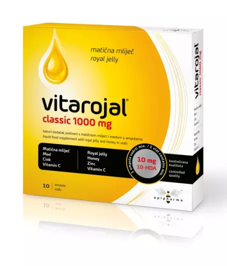 Vitarojal classic 1000 mg sadrži matičnu mliječ koja je prirodni biostimulator organizma. Svaka ampula sadrži 333,33 mg liofilizirane matične mliječi što odgovara 1000mg svježe matične mliječi.