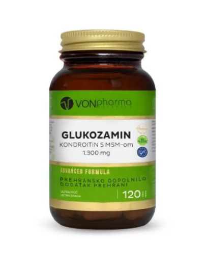 VONpharma GLUKOZAMIN&KONDROITIN S MSM-om 1.300mg inovativan je proizvod jakosti za zdravlje i obnovu zglobova i oštećene hrskavice koji sadrži: