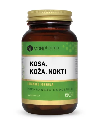 VONpharma KOSA, KOŽA, NOKTI kapsule napredna su prirodna kombinacija vitamina i minerala koji pridonose očuvanju zdrave kose, kože i noktiju.