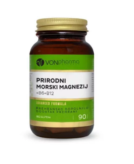 VONpharma prirodni morski magnezij oceanski je prirodni oblik magnezijevog hidroksida dobiven iz čiste morske vode obogaćen vitaminima B6 i B12. Morska voda sadrži približno 3,5% rastopljenih soli od kojih je približno 0,5% otopljenog magnezija. Za dobivanje jedne kapsule (250mg) prirodnog magnezija potrebno je 25000 litara čiste morske vode.