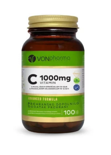 VONpharma VITAMIN C 1000mg dodatak je prehrani s vitaminom C inovativne tehnologije produljenog oslobađanja čak 10 - 12 sati. To je najdulje produljeno oslobađanje na tržištu i u skladu je s farmaceutskim standardima.
