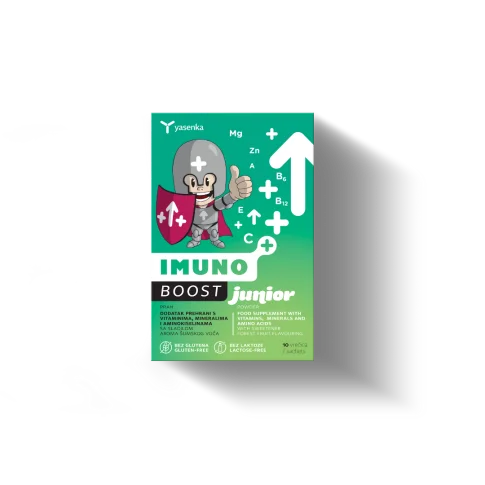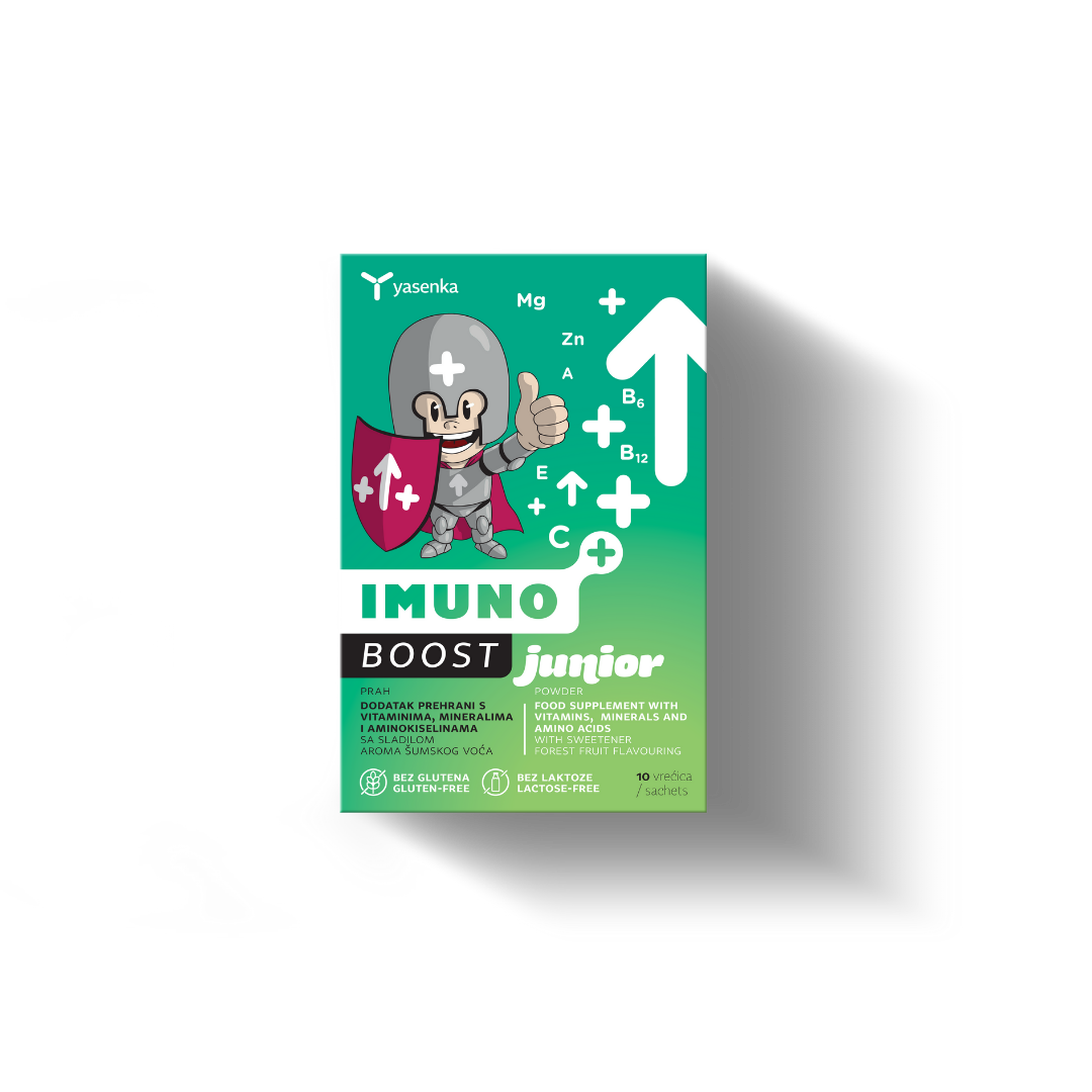 Imuno Boost junior u samo jednoj vrećici sadrži čak 13 aminokiselina, 11 vitamina i 6 minerala.