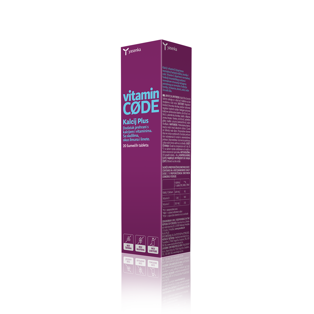 Yasenka Kalcij PLUS šumeće tablete dodatak je prehrani s kalcijem i vitaminima, koji pomaže u održavanju normalnih kostiju i zubi.