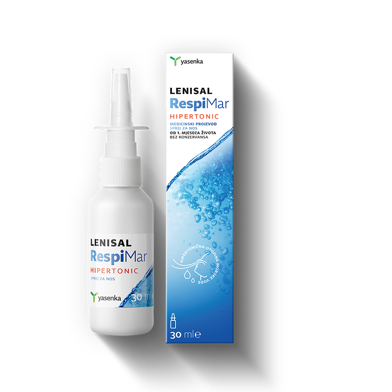 Yasenka Lenisal Respimar HIPERTONIC sprej za nos sadrži hipertoničnu otopinu morske soli.