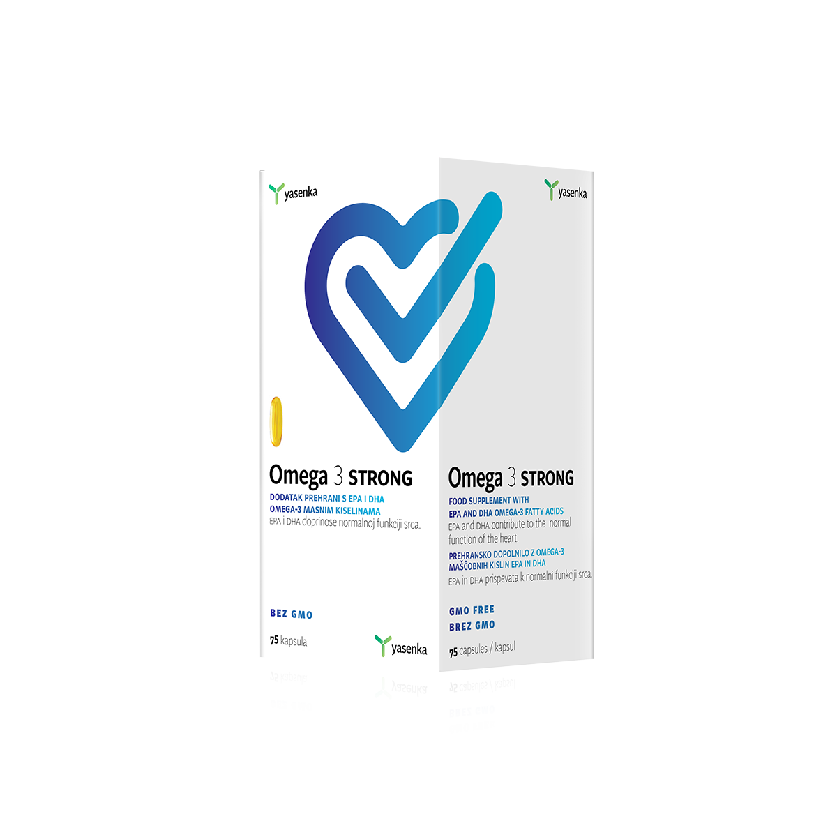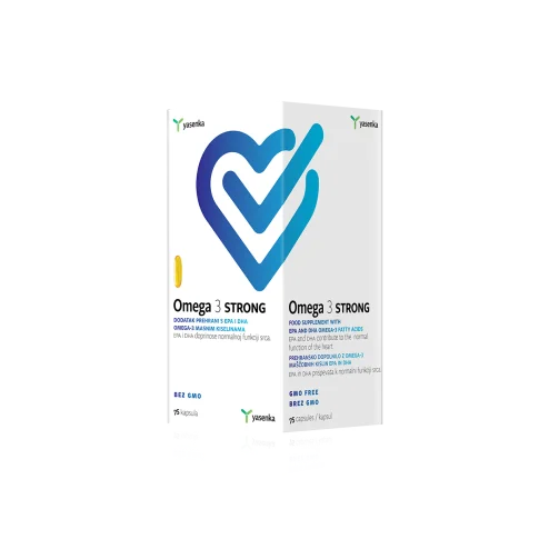 Yasenka Omega 3 STRONG kapsule dodatak su prehrani s EPA i DHA Omega-3 masnim kiselinama, koji doprinosi zdravlju srca i metabolizmu kolesterola i masnoća u krvi.