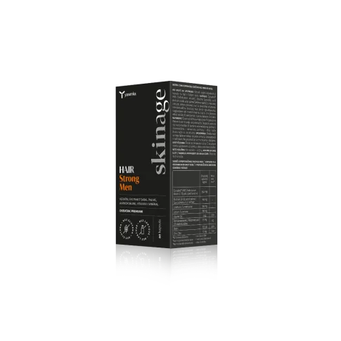 Yasenka Skinage HAIR Strong MEN kapsule protiv ispadanja kose je napredna klinički ispitana formula posebno prilagođena potrebama muškaraca koji se suočavaju s pojačanim ispadanjem kose, prorjeđenjem i stanjivanjem vlasi te gubitkom pigmenta.