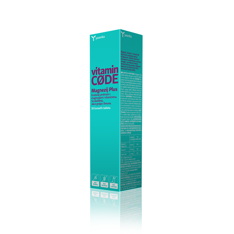 Yasenka Vitamin CODE magnezij PLUS šumeće tablete dodatak su prehrani s magnezijem i vitaminima.