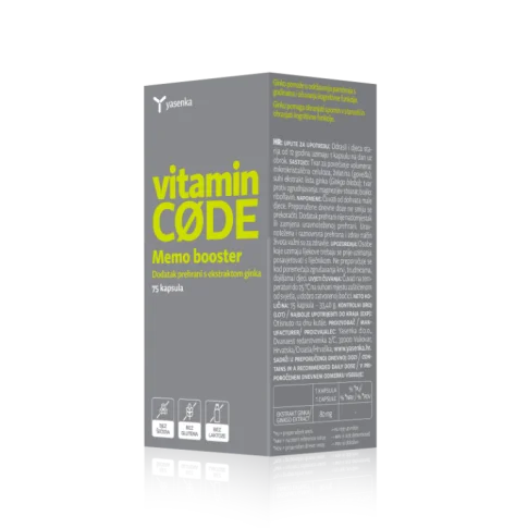 Yasenka VITAMIN CODE Memo Booster kapsule za bolje pamćenje dodatak su prehrani s ekstraktom ginka te vitaminom B12 i pantotenskom kiselinom. Memo Booster formuliran je za one koji žele poboljšati svoje mentalne i fizičke sposobnosti na prirodan način.