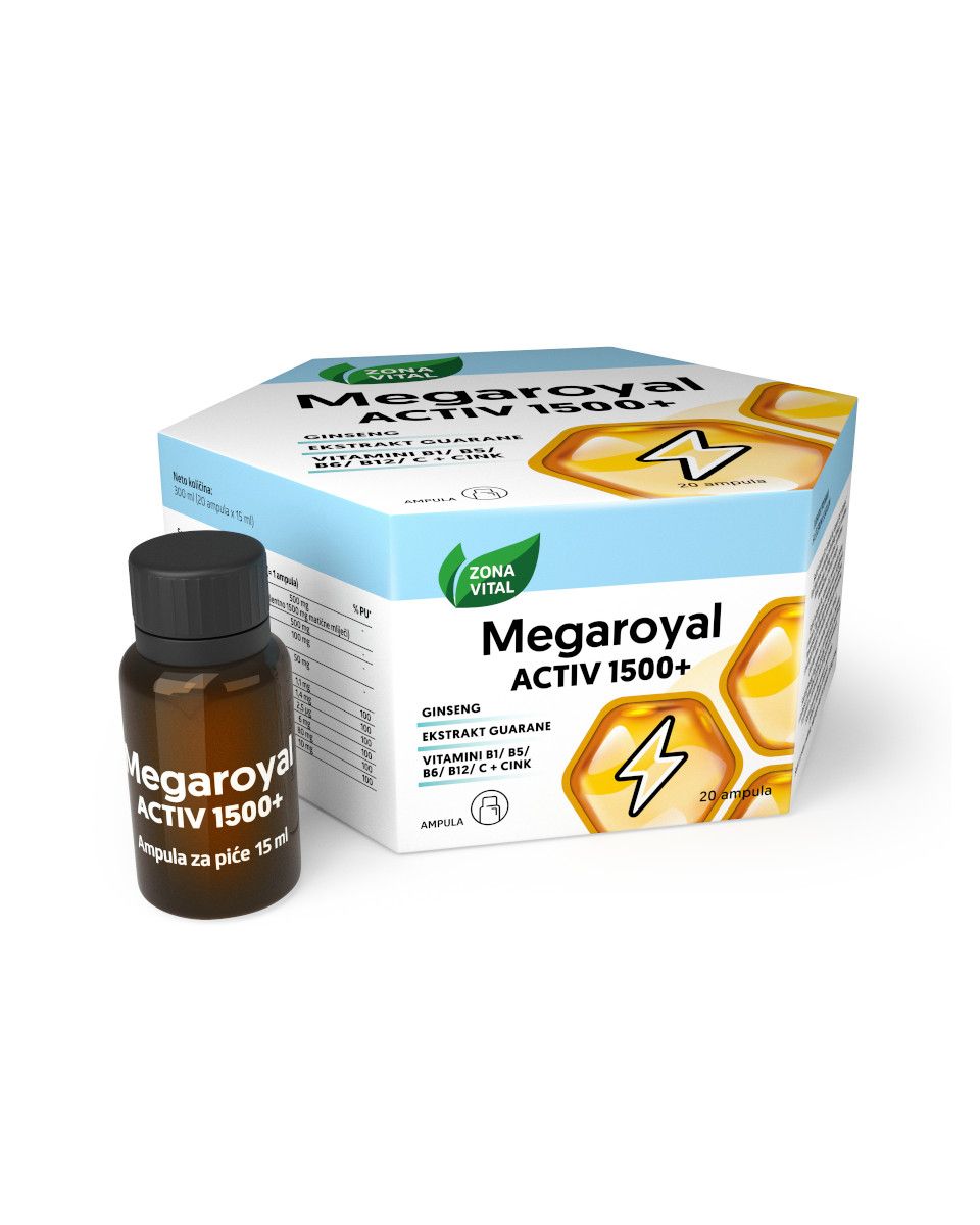 Zona vital MEGAROYAL ACTIV 1500+ ampule s matičnom mliječi dodatak su prehrani s visokom dozom matične mliječi i dodatkom vitamina i minerala za povećanje energije i vitalnosti.