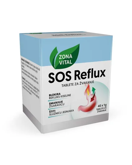 Zona vital SOS REFLUX tablete za žvakanje za žgaravicu blokiraju refluks kiseline, smanjuje žarenje i štiti sluznicu jednjaka.