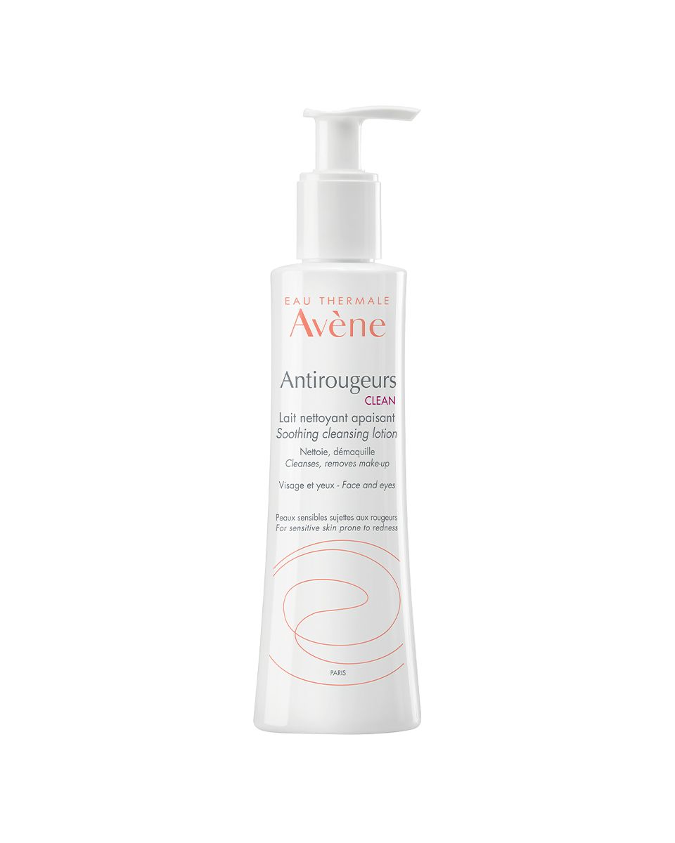 Avene Antirougeurs CLEAN umirujuće mlijeko za čišćenje kože sklone crvenilu bogato Avène termalnom izvorskom vodom, nježno čisti i uklanja šminku s kože sklone crvenilu, čiju osjetljivost poštuje. Umiruje osjećaj iritacije i zatezanja te koži pruža ugodu, podatnost i mekoću. Umirujuće mlijeko za čišćenje nije potrebno ispirati. Preporučuje se i nakon površinskog dermatološkog tretmana.